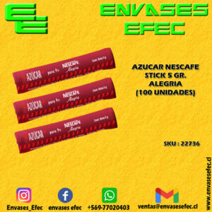 AZUCAR NESCAFE STICK 5 GR. ALEGRIA (100 UNIDADES)