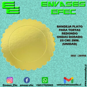 BANDEJA PLATO PARA TORTAS REDONDO ONDAS DORADA GLITER 20 CMS. 2MM (UNIDAD)