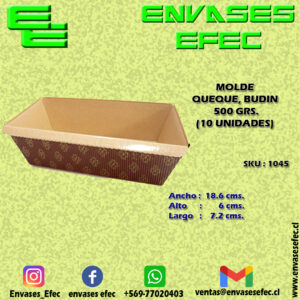 MOLDE QUEQUE, BUDIN 500 GRS. (10 UNIDADES)