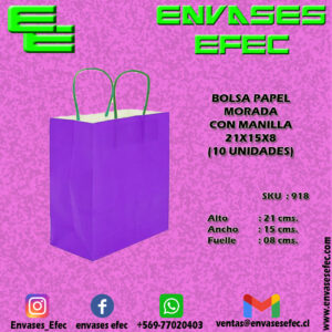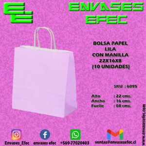 BOLSA PAPEL LILA PASTEL CON MANILLA 21X15X8 (10 UNIDADES)