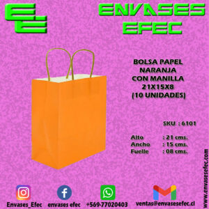BOLSA PAPEL NARANJA CON MANILLA 21X15X8 (10 UNIDADES)