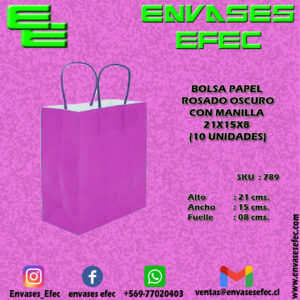 BOLSA PAPEL ROSADO OSCURO CON MANILLA 21X15X8 (10 UNIDADES)
