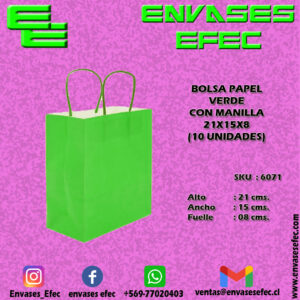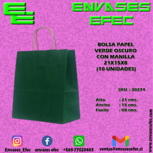 BOLSA PAPEL VERDE OSCURO CON MANILLA 21X15X8 (10 UNIDADES)