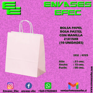 BOLSA PAPEL ROSADA PASTEL CON MANILLA 21X15X8 (10 UNIDADES)