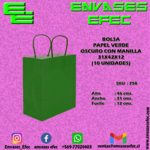 BOLSA PAPEL VERDE OSCURO CON MANILLA 31X42X12 (10 UNIDADES)