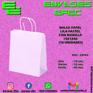 BOLSA PAPEL LILA PASTEL CON MANILLA 15X12X6 (10 UNIDADES)