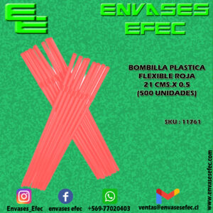 BOMBILLA PLASTICA FLEXIBLE ROJA 21 CMS.X 0.5 (500 UNIDADES)