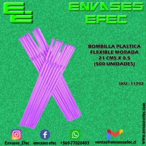 BOMBILLA PLASTICA FLEXIBLE MORADA 21 CMS.X 0.5 (500 UNIDADES)