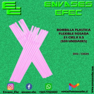 BOMBILLA PLASTICA FLEXIBLE ROSADA 21 CMS.X 0.5 (500 UNIDADES)