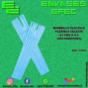 BOMBILLA PLASTICA FLEXIBLE CELESTE 21 CMS.X 0.5 (500 UNIDADES)