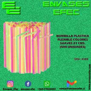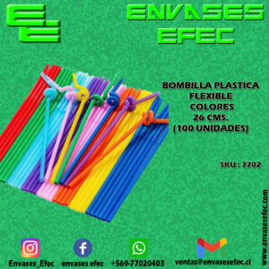 BOMBILLA PLASTICA FLEXIBLE COLORES 26 CMS. (100 UNIDADES)