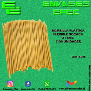 BOMBILLA PLASTICA FLEXIBLE DORADA 21 CMS.X 0.5 (100 UNIDADES)