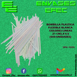 BOMBILLA PLASTICA FLEXIBLE BLANCA COLORES LINEAS 21 CMS. X 0.5 (500 UNIDADES)