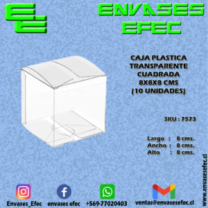 CAJA PLASTICA TRANSPARENTE CUADRADA 8X8X8 CMS (10 UNIDADES)