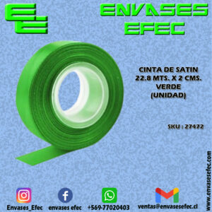 CINTA DE SATIN 22.8 X 2 CMS. VERDE (UNIDAD)