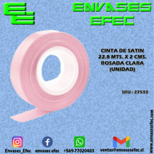 CINTA DE SATIN 22.8 X 2 CMS. ROSADA CLARA (UNIDAD)
