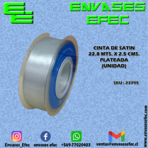 CINTA DE SATIN 22.8 X 2.5 CMS. PLATEADA (UNIDAD)