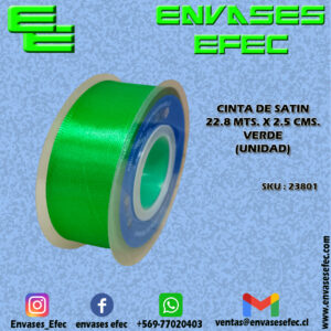 CINTA DE SATIN 22.8 X 2.5 CMS. VERDE (UNIDAD)