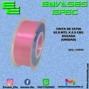 CINTA DE SATIN 22.8 X 2.5 CMS. ROSADA (UNIDAD)
