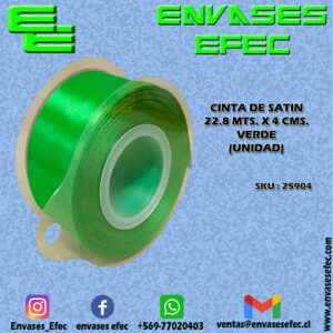 CINTA DE SATIN 22.8 X 4 CMS. VERDE (UNIDAD)