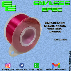 CINTA DE SATIN 22.8 X 4 CMS. VINO TINTO (UNIDAD)