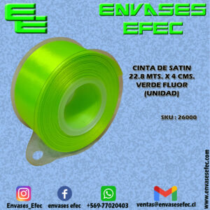 CINTA DE SATIN 22.8 X 4 CMS. VERDE FLUOR (UNIDAD)