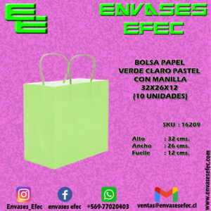 BOLSA PAPEL VERDE CLARO PASTEL CON MANILLA 32X26X12 (10 UNIDADES)