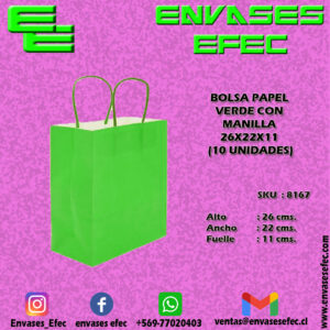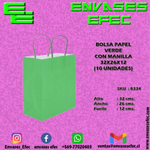 BOLSA PAPEL VERDE CON MANILLA 26X22X11 (10 UNIDADES)