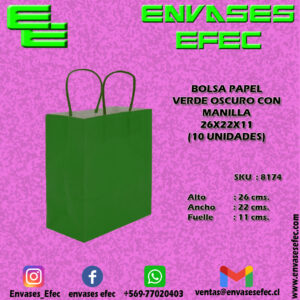 BOLSA PAPEL VERDE OSCURO CON MANILLA 26X22X11 (10 UNIDADES)