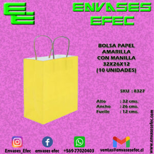Bolsa Con Manilla 26x22x11 Cms.BOLSA PAPEL AMARILLA CON MANILLA 26X22X11 (10 UNIDADES)$3.000 Añadir al carrito