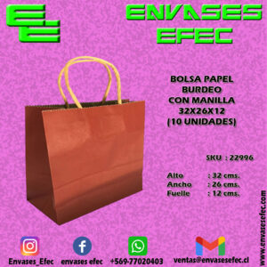 BOLSA PAPEL BURDEO CON MANILLA 32X26X12 (10 UNIDADES)