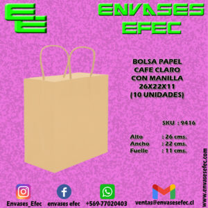 BOLSA PAPEL CAFE CLARO CON MANILLA 26X22X11 (10 UNIDADES)