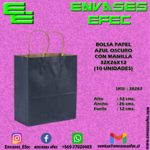 BOLSA PAPEL AZUL OSCURO CON MANILLA 32X26X12 (10 UNIDADES)
