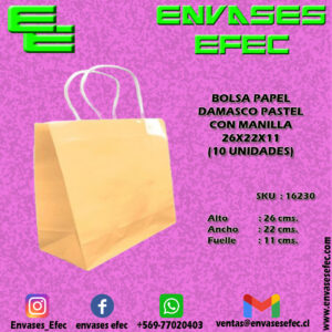 BOLSA PAPEL DAMASCO PASTEL CON MANILLA 26X22X11 (10 UNIDADES)