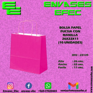 BOLSA PAPEL FUCSIA CON MANILLA 26X22X11 (10 UNIDADES)