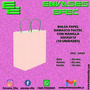BOLSA PAPEL DAMASCO PASTEL CON MANILLA 32X26X12 (10 UNIDADES)