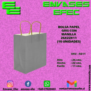 BOLSA PAPEL GRIS CON MANILLA 26X22X11 (10 UNIDADES)