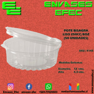 POTE BISAGRA LISO 250CC/8OZ (40-8 FL) (50 UNIDADES)