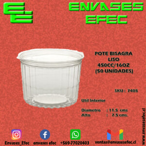 POTE BISAGRA LISO 450CC/16OZ (40-16 FL) (50 UNIDADES)