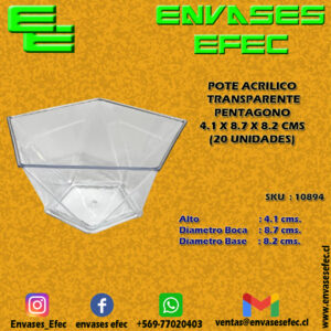 POTE ACRILICO TRANSPARENTE PENTAGONO 4.1 X 8.7 X 8.2 CMS (20 UNIDADES)