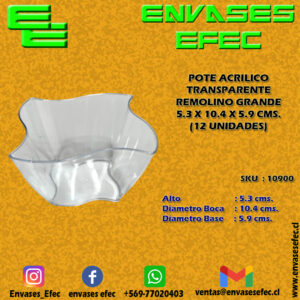 POTE ACRILICO TRANSPARENTE REMOLINO GRANDE 5.3 X 10.4 X 5.9 CMS. (12 UNIDADES)
