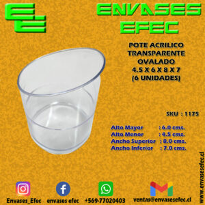 POTE ACRILICO TRANSPARENTE OVALADO 4.5 X 6 X 8 X 7 (6 UNIDADES)