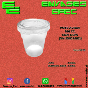 POTE AVION 180 CC. CON TAPA (50 UNIDADES)