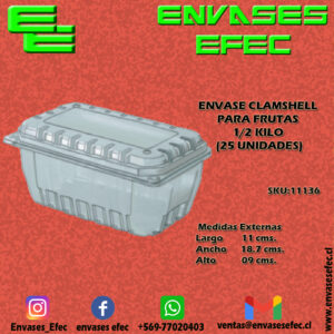 ENVASE CLAMSHELL PARA FRUTAS 1/2 KILO (25 UNIDADES)