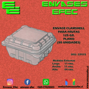 ENVASE CLAMSHELL PARA FRUTAS 125 GR. PLANO (50 UNIDADES)