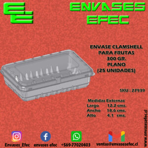ENVASE CLAMSHELL PARA FRUTAS 300 GR. PLANO (25 UNIDADES)