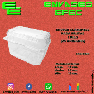 ENVASE CLAMSHELL PARA FRUTAS 1 KILO (25 UNIDADES)