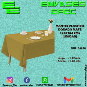 MANTEL PLASTICO DORADO MATE 137X183 CMS (UNIDAD)