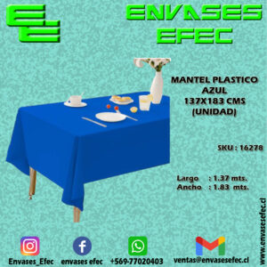 MANTEL PLASTICO AZUL 137X183 CMS (UNIDAD)