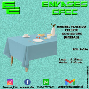 MANTEL PLASTICO CELESTE 137X183 CMS (UNIDAD)